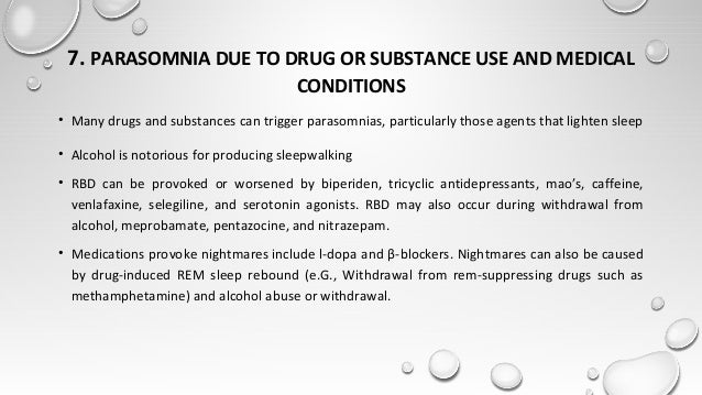 Sleep terror drugs. Sleep terrors are classified as a parasomnia an undesirable behavior or experience during sleep. Other factors that might contribute to night terrors include. A way and somehow made it to bed difficult- Could not Lie Down except.
