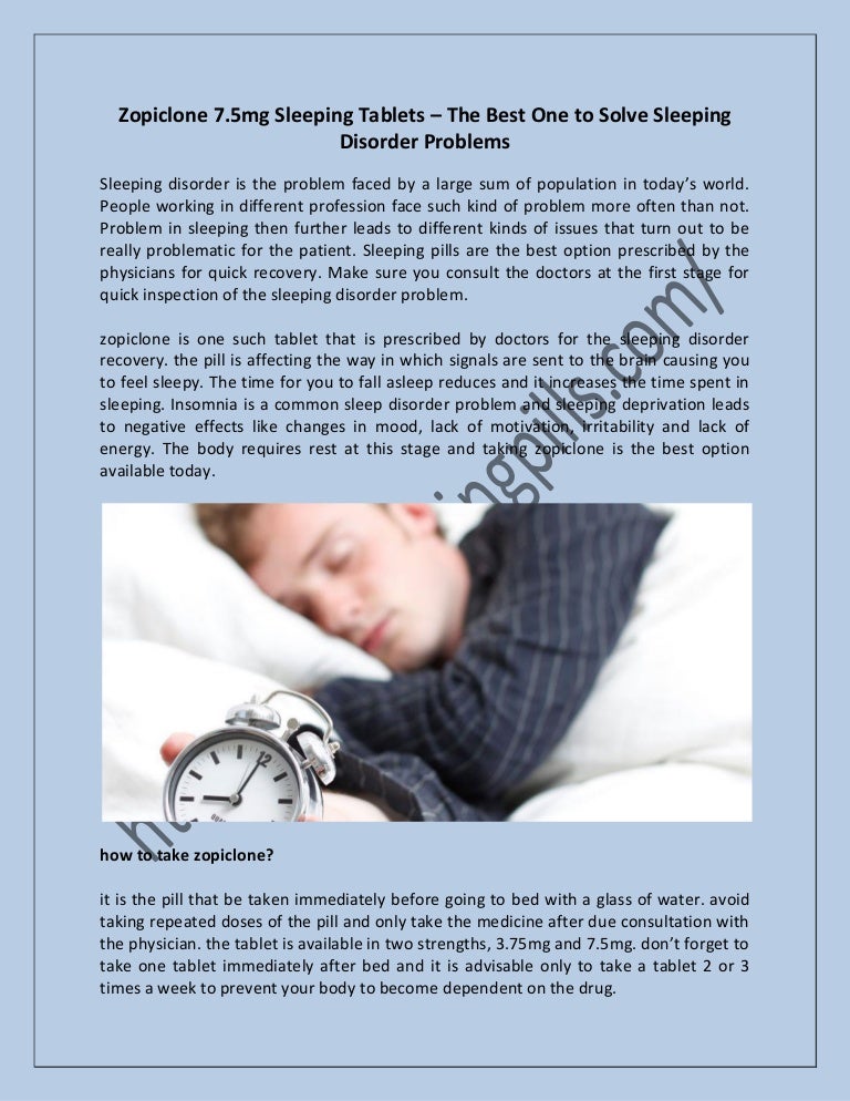 Sleeping Tablets Zopiclone Anxiety
